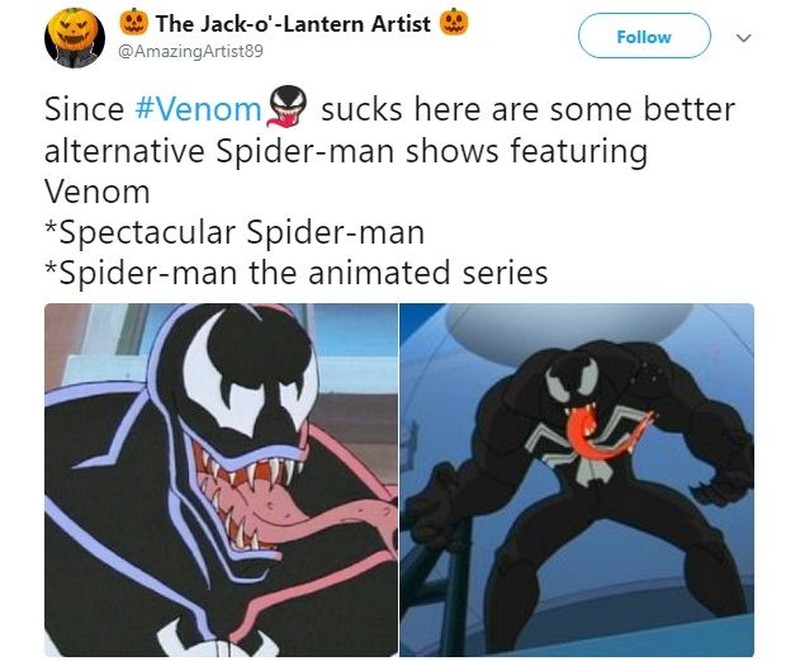 Malah ada yang kasih saran untuk melihat Venom yang lebih baik di kartun. (Foto: Twitter)