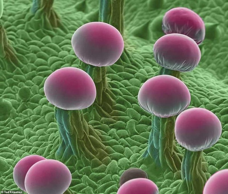 Bagian ungu ini adalah trikoma kelenjar yang menghasilkan bau. Foto: Ted Kinsman