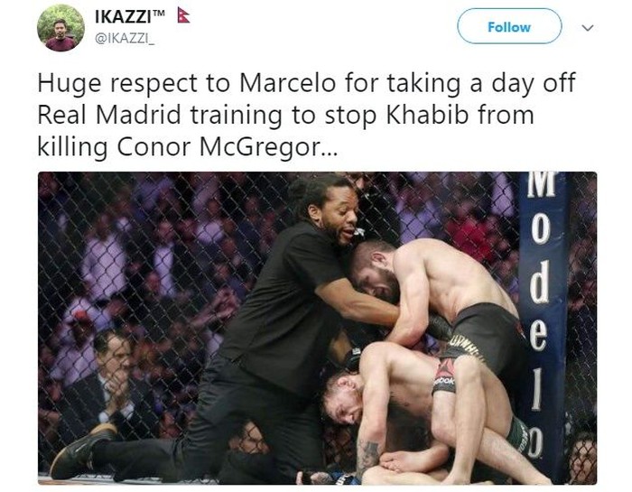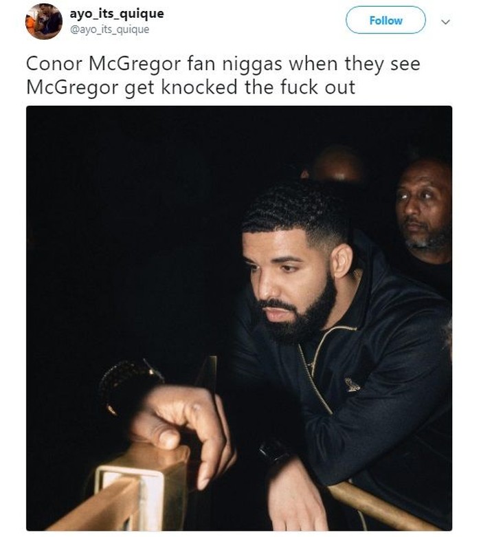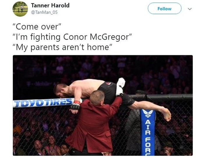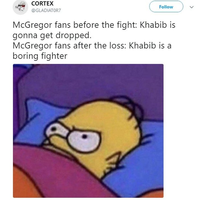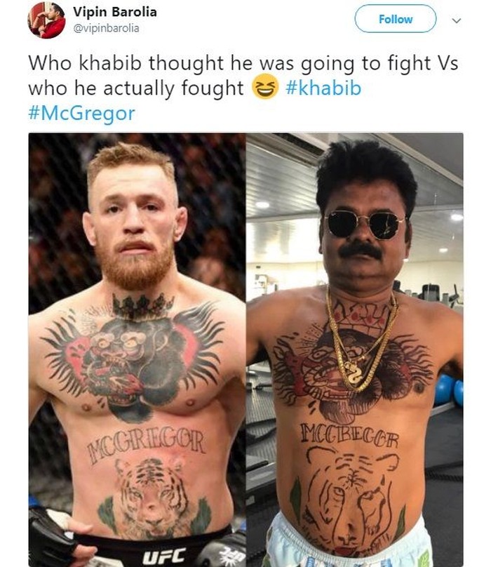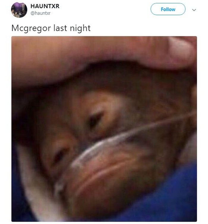 Conor McGregor baru saja kalah dari Khabib Nurmagomedov dalam pentas UFC 229. Beginilah netizen gambarkan kondisinya semalam. Foto: Istimewa