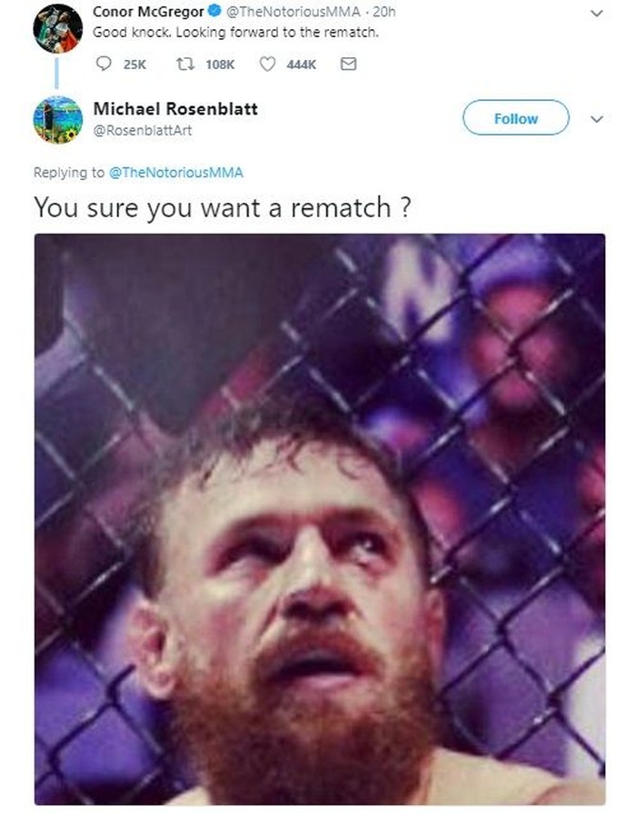 Pukulan yang diterima McGregor pun juga langsung jadi sasaran meme oleh netizen di Twitter. Foto: Istimewa
