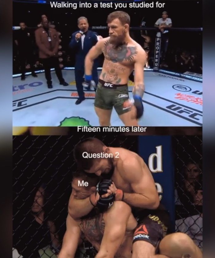 Netizen menggambarkan kondisi McGregor di awal dan akhir pertandingan ibarat sebelum dan setelah menjalani ujian. Foto: Istimewa