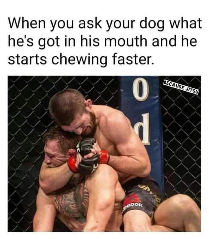Begini cara Khabib mengalahkan McGregor, yang dibilang seperti pemilik anjing yang berusaha menghentikan peliharaannya untuk mengunyah benda berbahaya. Foto: Istimewa