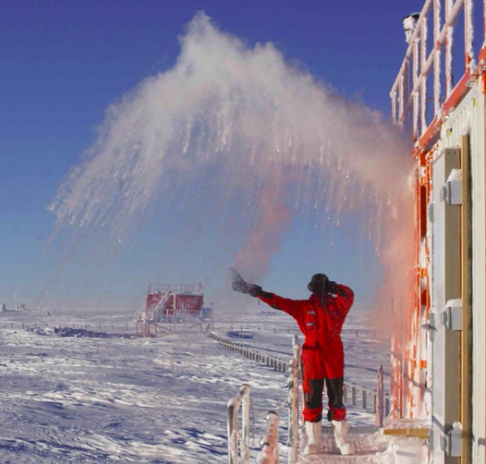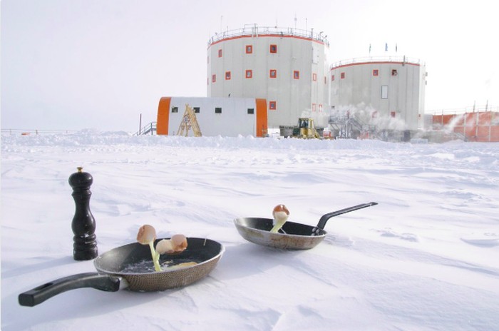 βKami kehabisan makanan segar di awal musim dingin (karena kami tidak memiliki pasokan dari awal Februari hingga awal November), jadi kebanyakan kami makan makanan beku: mengingat bahwa suhu tidak pernah positif, kami hanya menyimpannya dalam wadah di luar, tidak perlu di freezer.β (Foto: Twitter)