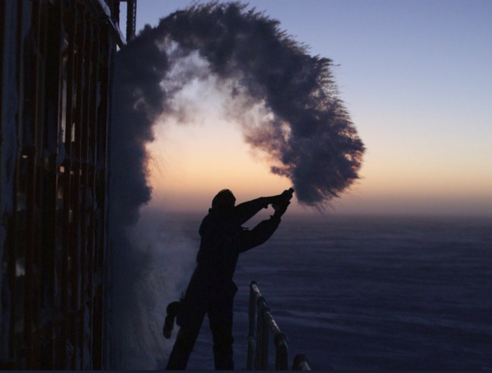 "Ini adalah daerah terdingin di Bumi, dengan suhu mencapai di bawah -80 Β° C di musim dingin, Kami melihat matahari lagi pada bulan Agustus setelah 3 bulan tanpa pernah melewati cakrawala. Udara sangat kering dan minim oksigen.β jelasnya. (Foto: Twitter)