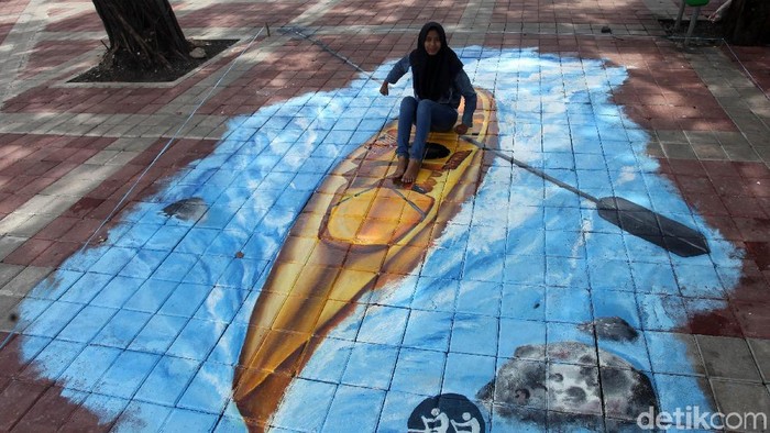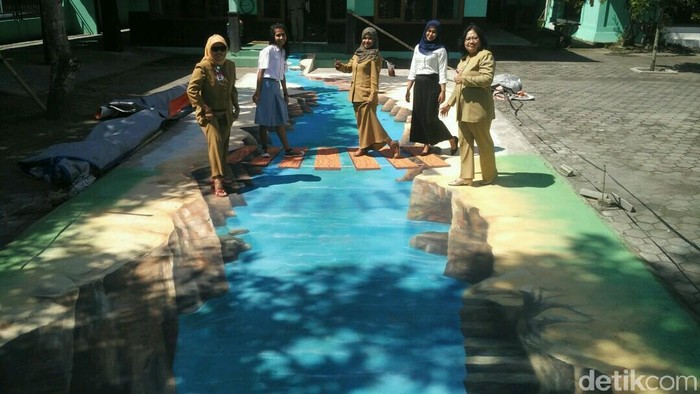 Lukisan 3D nan keren ini diambil di Kantor Kecamatan Sedayu, Bantul, pada 7 Februari 2018). (Foto: Usman Hadi/detikcom)