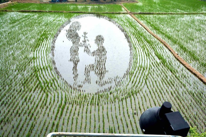 Romansa di sawah! Gambar 3D di Shenyang, China ini memunculkan sosok dua sejoli. (Foto: VCG/VCG via Getty Images)