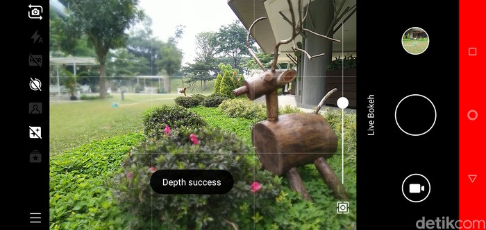 Ponsel ini punya fitur Live Bokeh untuk menyesuaikan kedalaman efek blur pada latar objek. (Foto: detikINET/Muhamad Imron Rosyadi)