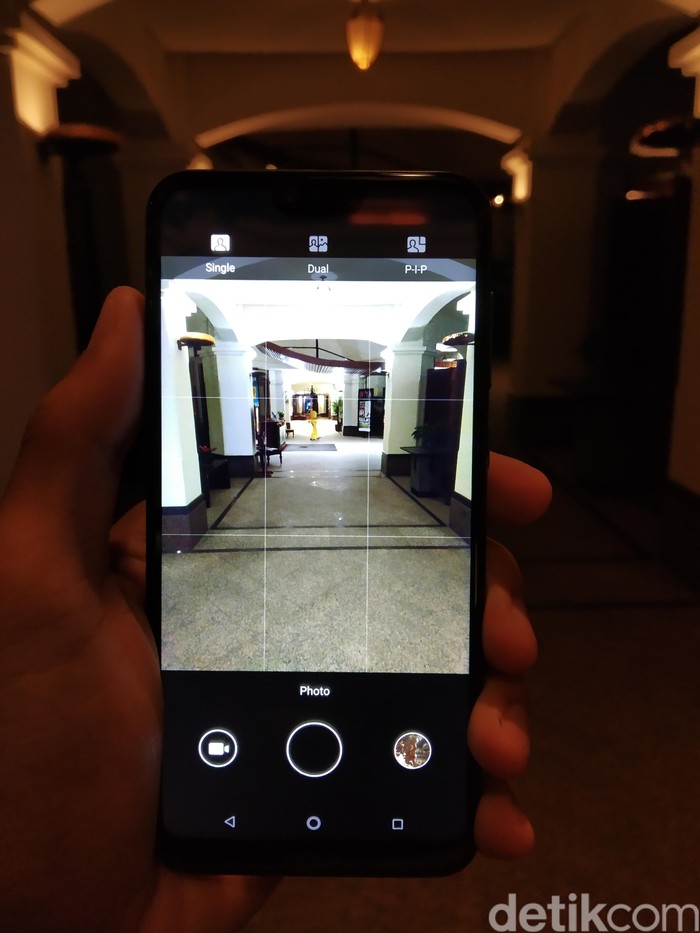 Dengan fitur tersebut, user bisa mengambil foto dan video berdasarkan tangkapan kamera depan dan belakang dalam satu layar. (Foto: detikINET/Muhamad Imron Rosyadi)