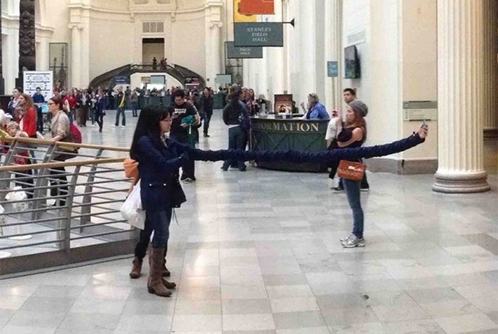 Tak butuh tongkat selfie kalau tangannya sudah panjang begini. (Foto: Brightside)