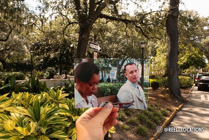 Adegan film Forrest Gump ini berlokasi di Chippewa Square, Savannah, Gorgia. Foto: instagram.com/reel_locations/