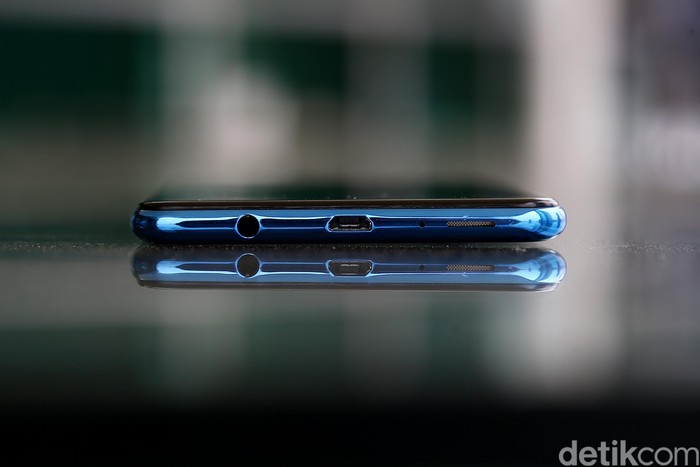 Bagian bawah Galaxy A9 terlihat speaker, colokan headphone standar 3,5 mm serta colokan USB Type C. Foto: Muhammad Ridho