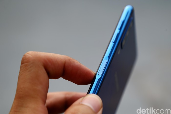 Sedangkan pemindai sidik jari Galaxy A7 berada di sisi casing sebelah kanan. Foto: Muhammad Ridho