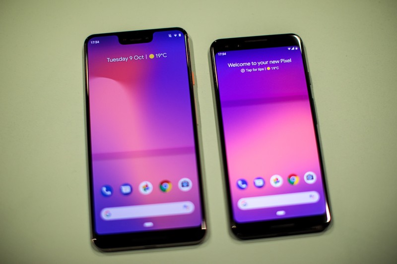 Sebelumnya, Google juga sudah merilis duo ponsel anyarnya, yaitu Pixel 3 (kanan) dan Pixel 3 XL. Foto: Drew Angerer/Getty Images