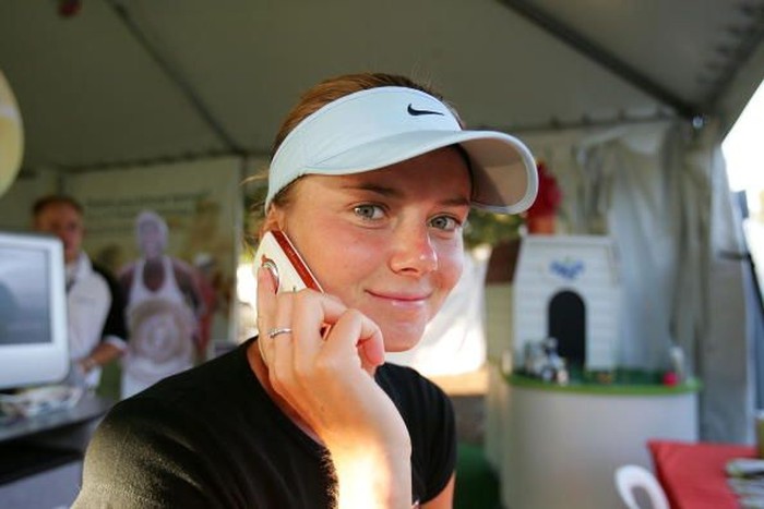 Sony Ericsson kemudian menjadi sponsor kompetisi tenis wanita, WTA Tour. Ini si cantik Daniel Hantuchova memakai ponsel Sony Ericsson. Foto: Getty Images