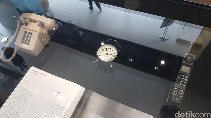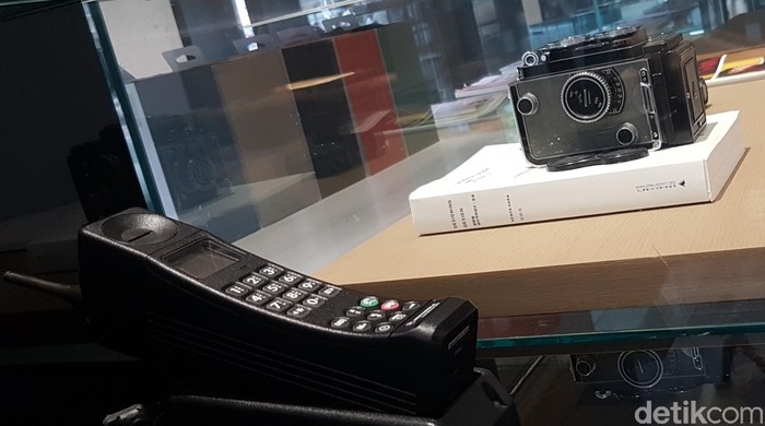 Jejeran barang jadul di OPPO Super Flagship Store. Mulai dari telepon kabel, jam analog, sampai telepon genggam generasi awal. Foto: Kris Fathoni/detikINET