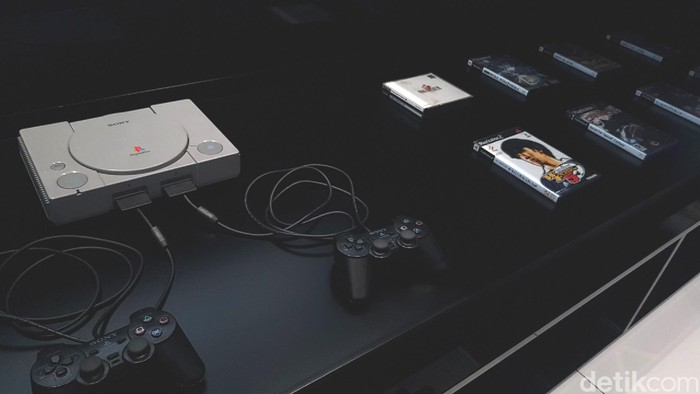 Begini penampakan PS1 di toko OPPO. Walau bentuk konsolnya menyerupai PS generasi awal, gamepadnya malah lebih mirip PS2. Ada CD game juga lho. Foto: Kris Fathoni/detikINET