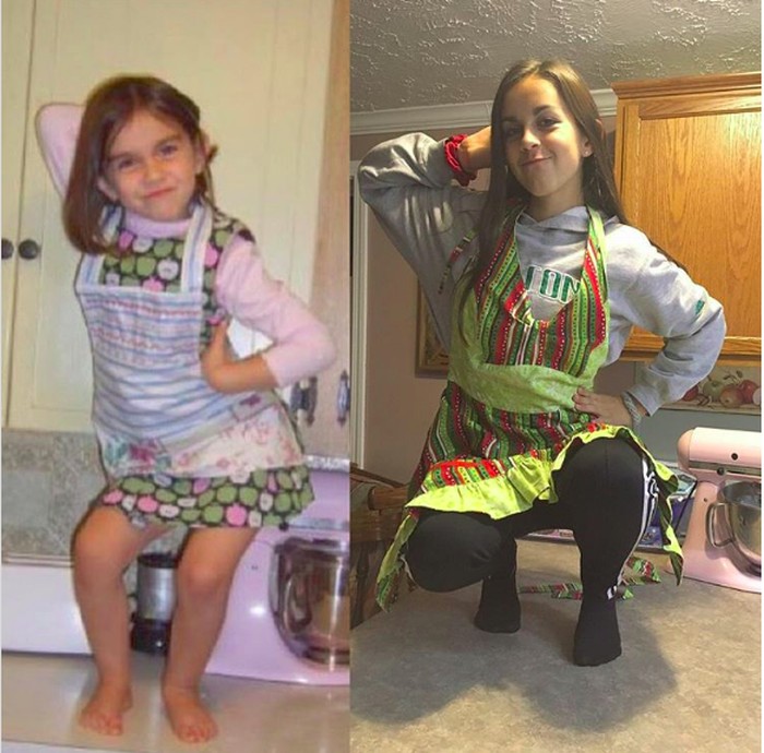Pose dulu pake celemek sebelum bantu mama. (Foto: Brightside)