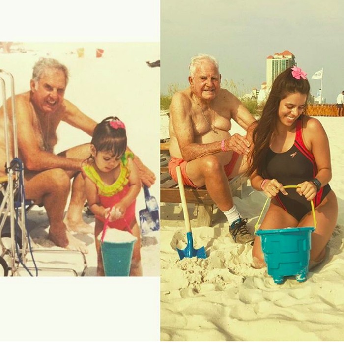 "23 tahun kemudian dan kita masih membuat istana pasir bersama. Kakekku adalah yang terhebat!" (Foto: Brightside)