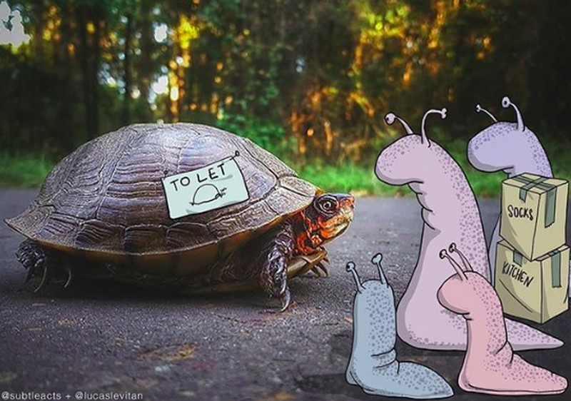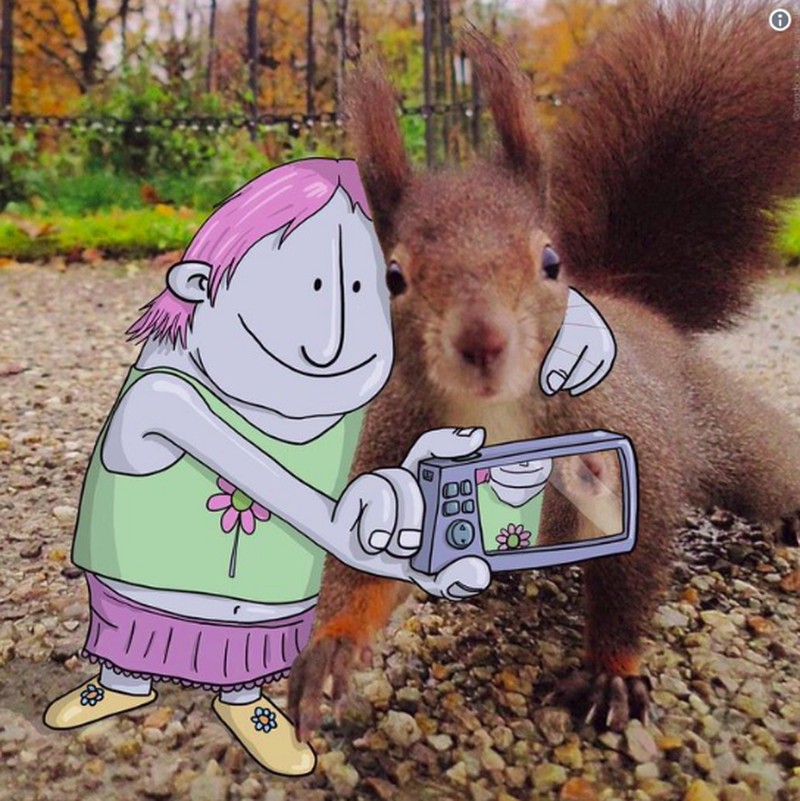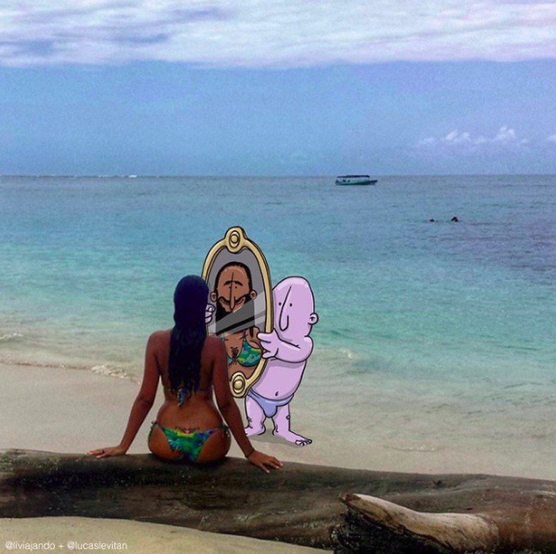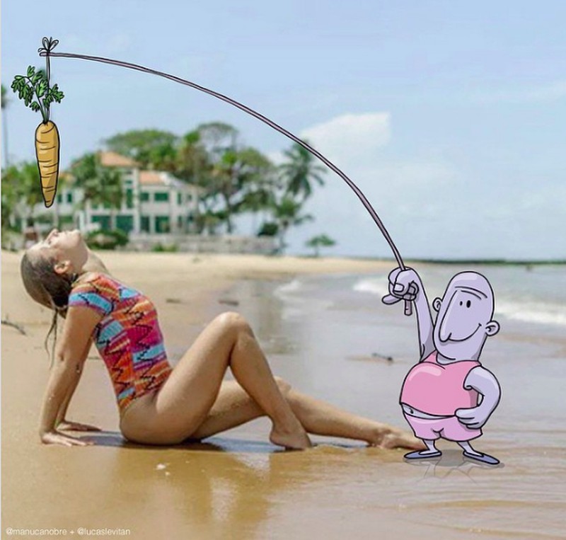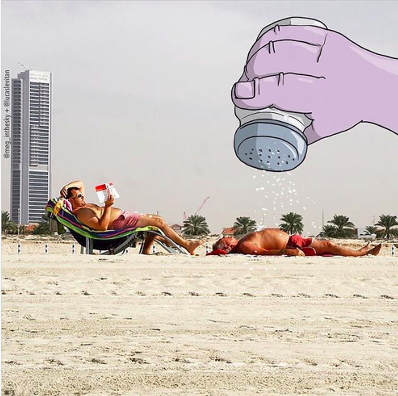Dari foto itulah ia mulai berimajinasi secara liar dengan memasukan karakter-karakter lucu hingga konyol. (Foto: Lucas Levitan)