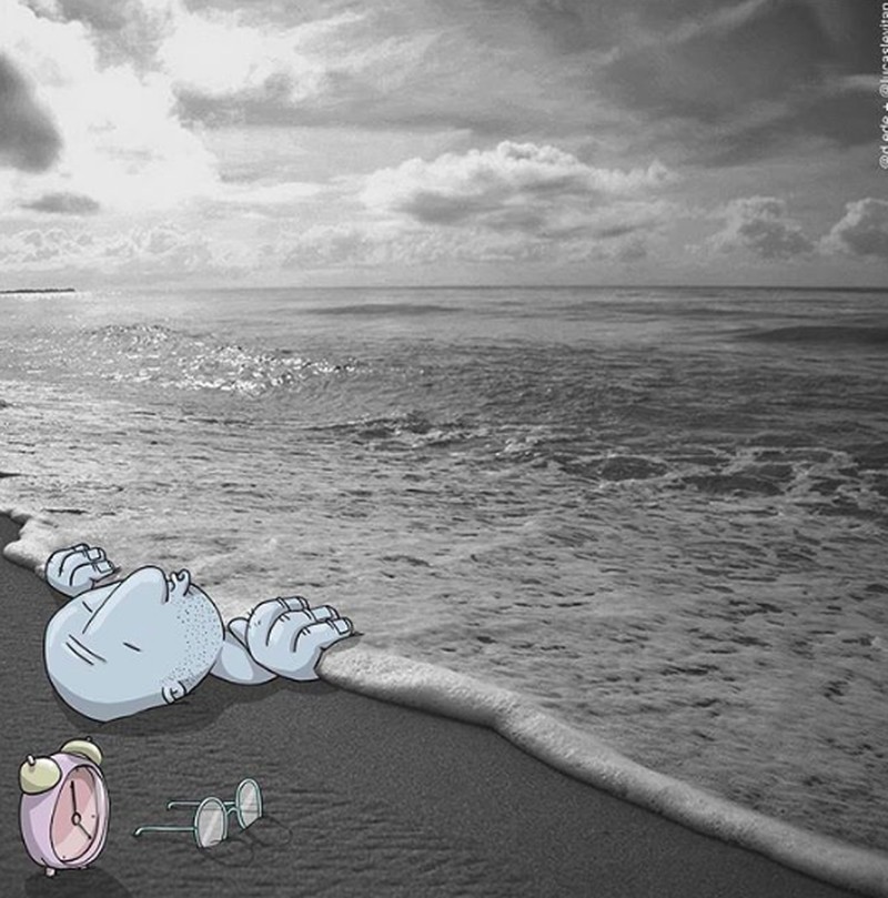 Sebelum menjadi seorang ilustrator, lucas hanyalah pekerja kantoran biasa. Namun setelah mengalami kecelakaan yang unik yakni ketiban batu bata dari atap gedung ia pun mengalami perubahan untuk hidupnya. (Foto: Lucas Levitan)