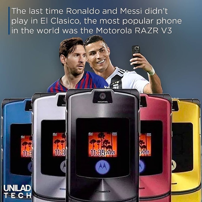 Dulu, Motorola RAZR 3 jadi salah satu ponsel paling populer ketika El Clasico dimainkan tanpa Ronaldo dan Messi. Foto: Istimewa
