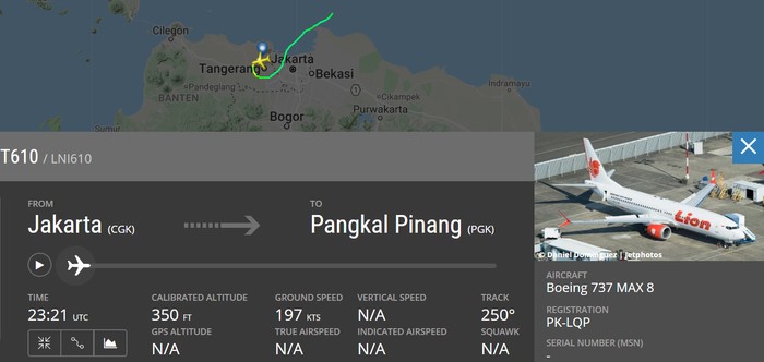 Detik-detik JT 610 Terbang dan Menghilang di Flightradar24