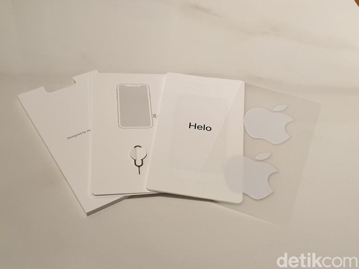 Dalam paket penjualan terdapat buku petunjuk, jarum pembuka slot SIM Card dan stiker Apple. Foto: Adi Fida Rahman/detikINET