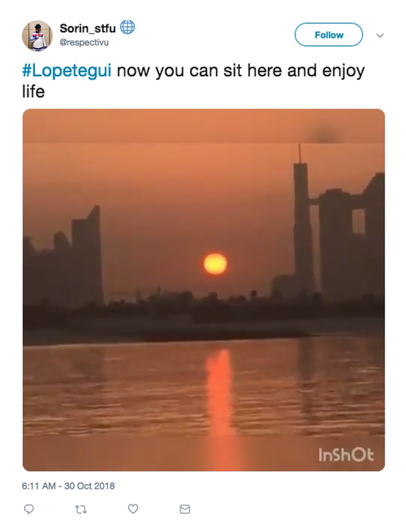 Usai dipecat Real Madrid, Lopetegui setidaknya bisa duduk santai menikmati hidup termasuk pemandangan matahari terbenam. (Foto: Internet/Twitter)