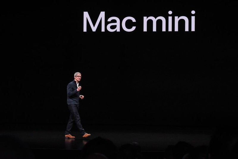 Suksesor Steve Jobs ini memperkenalkan pula Mac Mini terbaru. Mac Mini kini dibekali professor Intel Core i5 generasi kedelapan. Dengan spek tersebut, Apple mengklaim performa Mac Mini meningkat lima kali dari pendahulunya. Foto: Getty Images