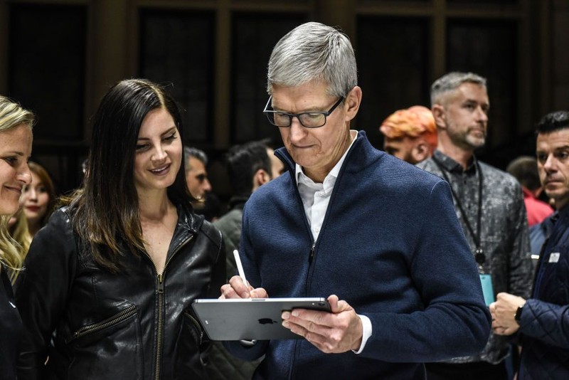 Tampak ia menjajal iPad Pro bersama penyanyi Lana Del Rey. Foto: Getty Images