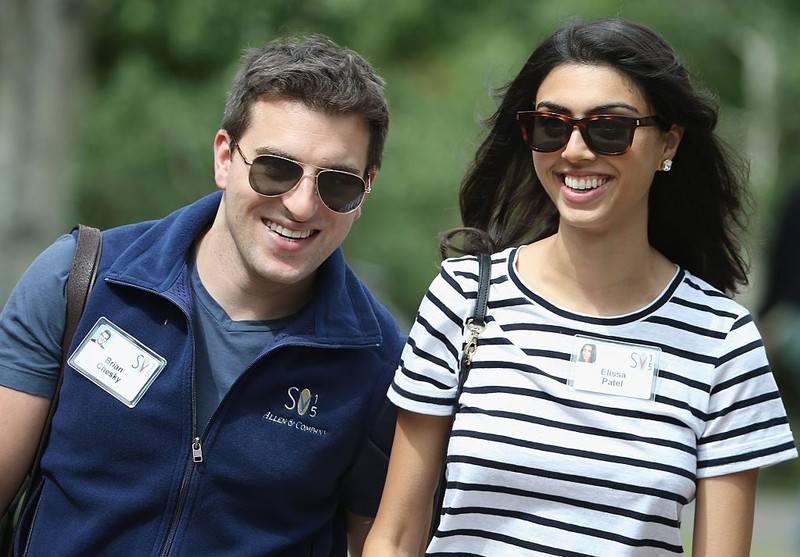 Pendiri Airbnb adalah Brian yang juga CEO bersama kedua temannya, Joe Gebbia dan Nathan Blecharczyk. Ini dia saat bersama sang istri, Elissa Patel. Foto: Getty Images