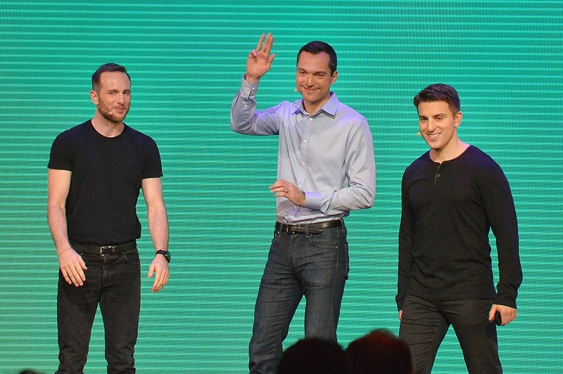 Inilah tiga pendiri Airbnb. Dahulu Brian sudah habis-habisan membangun situs itu hingga terbenam utang USD 25 ribu. Ia pun putar otak. Kala itu, sedang seru pertarungan capres Barack Obama dan John McCain. Brian berinisiatif membuat sarapan sereal kemasan khusus bertema pemilu yang ternyata laku, sekaligus mempromosikan situsnya yang memang berakhiran breakfast. Foto: Getty Images