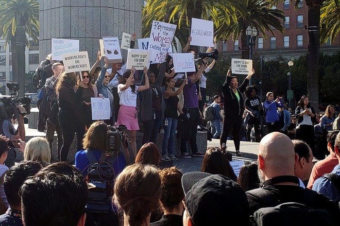 Para perempuan pegawai Google paling lantang menyuarakan aksi protesnya. Foto: Reuters
