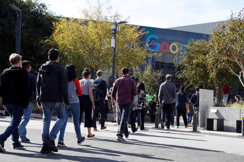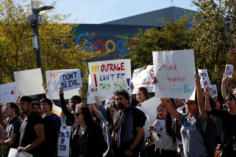 Ada beberapa tuntutan yang diminta para karyawan Google di antaranya mengakhiri pemaksaan arbitrasi pada kasus diskriminasi dan pelecehan, komitmen untuk mengakhiri ketidakadilan jumlah gaji dan kesempatan serta mengungkap kasus pelecehan seks secara transparan ke publik. Foto: Reuters