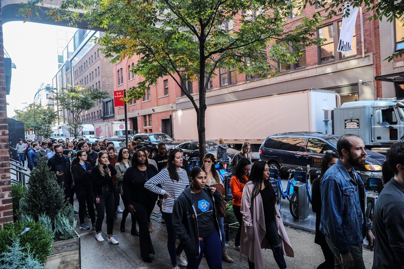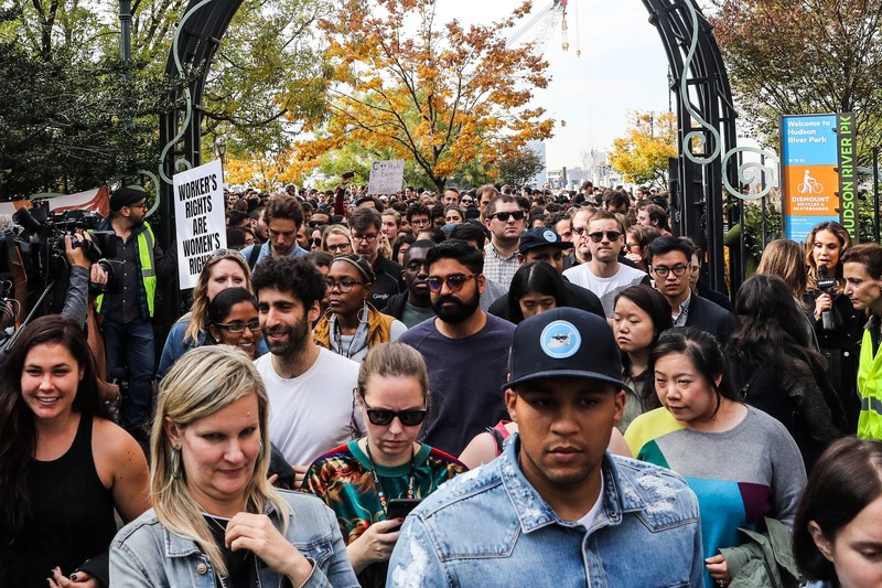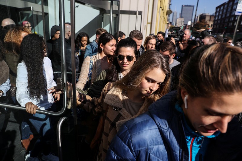 Kalau ini adalah karyawan Google di kantor New York yang ikut berdemo. Aksi walkout ini dimulai dari sejumlah kantor Google di Asia, seperti Singapura, dan kemudian diikuti oleh karyawan Google di belahan dunia lain. Foto: Reuters