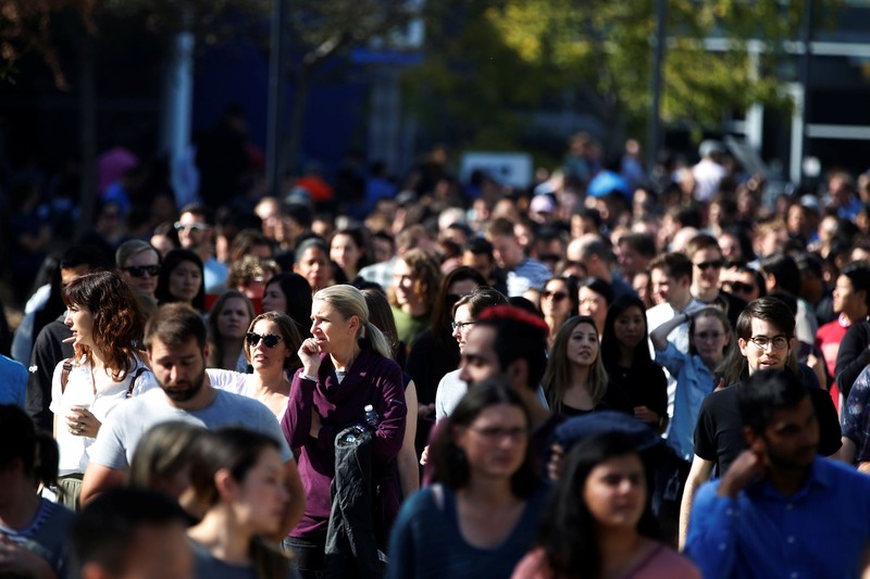 Para perempuan pegawai Google paling lantang menyuarakan aksi protesnya. Foto: Reuters