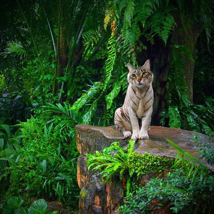 Tak hanya mengkombinasikan dengan hewan lain, Audrey juga membuat kucing ini seperti lukisan.(Foto: Boredpanda)