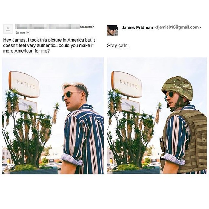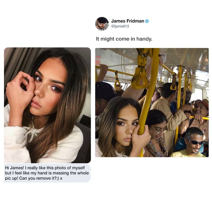 Ingin melihat keisengan James lain, bisa mengakses akunΒ Facebook dan Instagram- nya. Foto: James Fridman