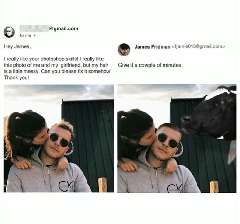 Inilah salah satu hasilnya, netizen ingin wajah kekasihnya diedit sedikit lebih kecil. Foto: James Fridman