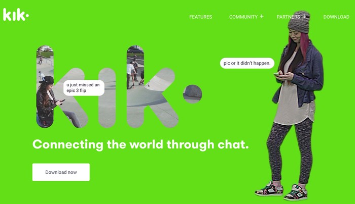 Kik. Salah satu aplikasi layanan pesan yang disenangi karena penggunanya tak perlu mendaftarkan nomor kontak. Punya antarmuka yang menyenangkan, walaupun ada kerisauan mengenai potensi celah keamanan di Kik. (Foto: kik.com)