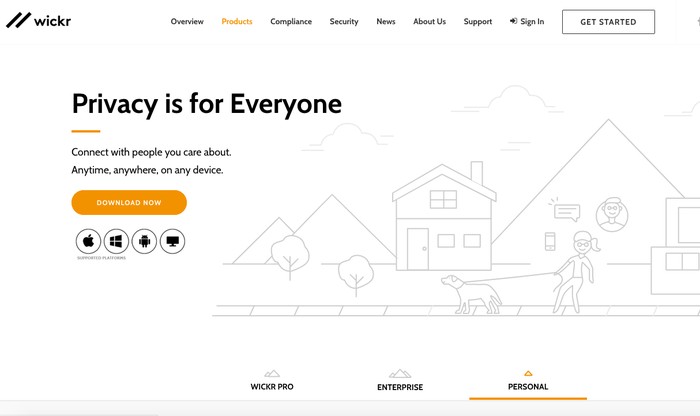 Wickr Me. Salah satu aplikasi yang digadang-gadang amat menjamin privasi di antaranya karena jaminan tidak menyimpan kontak pengguna di servernya, maupun metadata. Percakapan di sini pun punya enkripsi tingkat tinggi. (Foto:Β wickr.com)