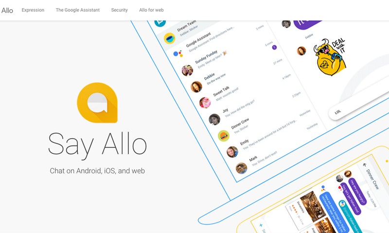 Google Allo. Diluncurkan pada tahun 2016, Allo menggunakan nomor ponsel untuk mengidentifikasi pengguna. Smart reply dengan teknologi machine learning, keberadaan Google Assistant, dan mode incognito jadi beberapa andalan. (Foto: allo.google.com)