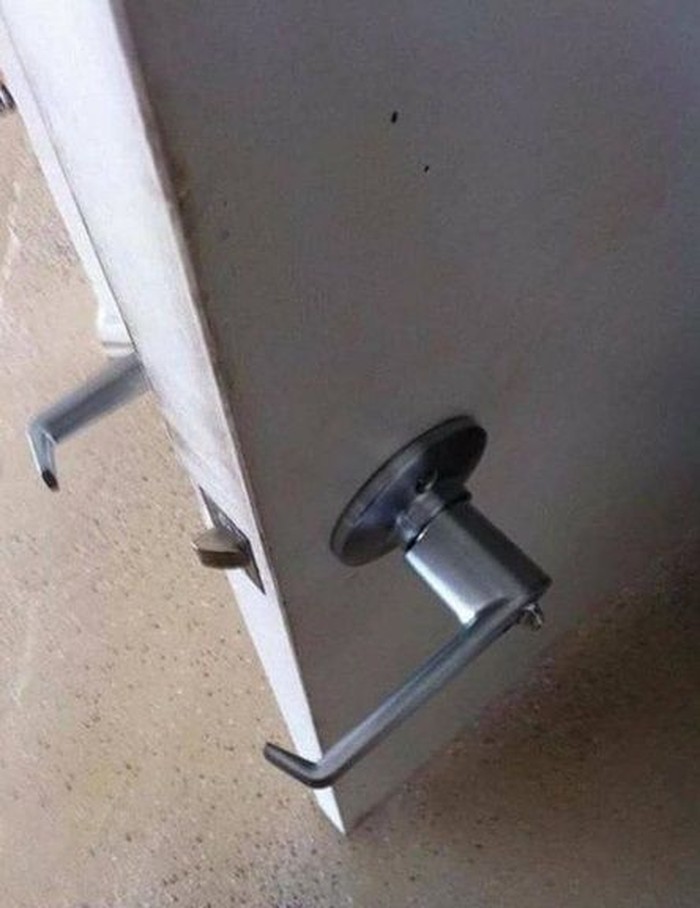 Sepertinya tidak seharusnya pintu itu terletak di sana. Atau mungkin pipanya yang menggangu? Foto: Instagram/9GAG