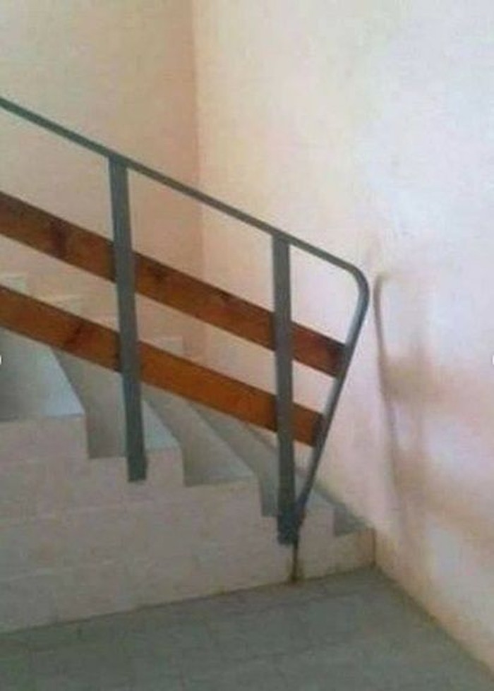 Berpikir positif saja, mungkin tembok tersebut tampak lebih cantik jika ditambah sedikit anak tangga. Foto: Instagram/9GAG