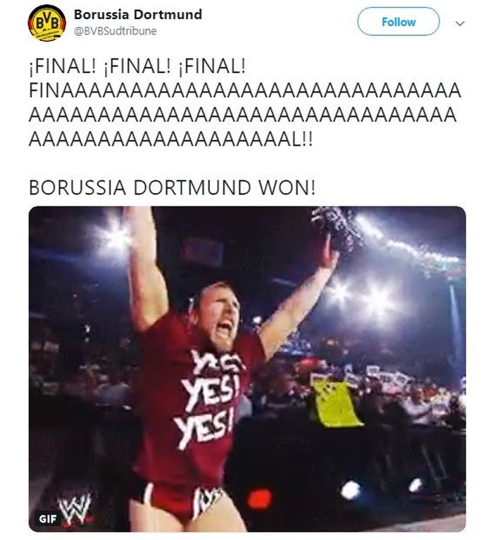 Kalau fans Bayer melongo, suporter Dortmund sih girang bukan kepalang. Foto: Istimewa