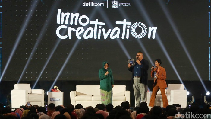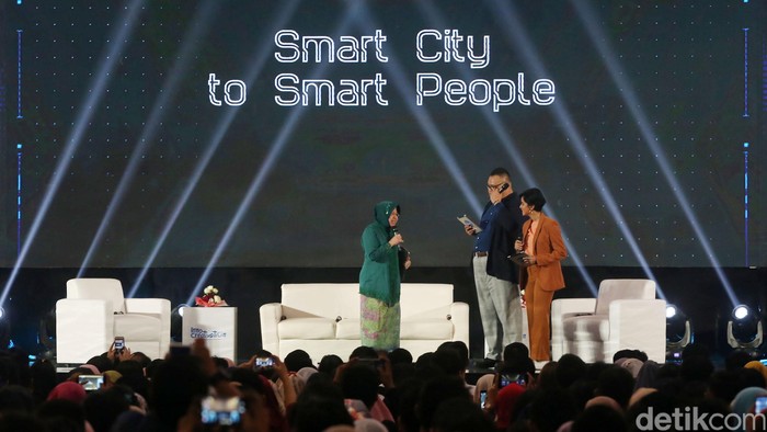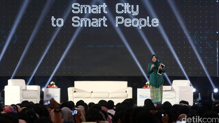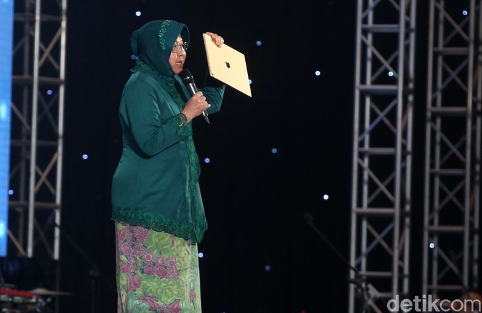 Wali Kota Tri Rismaharini saat tiba di lokasi acara.