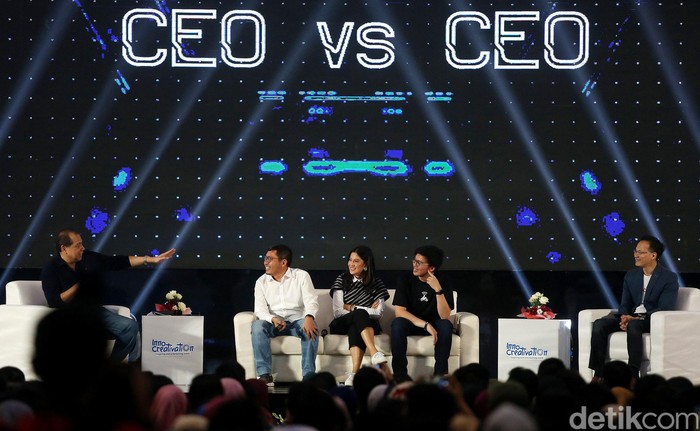 FotoINET CT Bongkar Rahasia Dapur Startup dalam Innocreativation Ari Saputra - detikInet Rabu, 14 Nov 2018 12:00 WIB Tautan telah disalin Jakarta - Para pembicara dari generasi start-up memaparkan bisnis start up dalam talkshow CEO vs CEO yang dipandu pengusaha nasional Chairul Tanjung. Founder and Chairman CT Corp, Chairul Tanjung (CT) saat memaparkan pengalamannya membangun bisnis start up dalam talkshow CEO vs CEO. Acara tersebut digelar di Grand City Convention Hall, Surabaya, Rabu (14/11/2018). CEO vs CEO merupakan salah satu dari rangkaian acara Innocreativation. Hadir sebagai nasarumber aktor Dian Sastro. Ahmad Zaky dari bukalapak terlihat sangat semringah. Kevin Aluwi dari Gojek dan Randy YusufΒ dari Google Indonesia semakin menambah keseruan acara. (/) TAGS innocreativation chairul tanjung ct startup LIHAT LAINNYA Tautan telah disalin