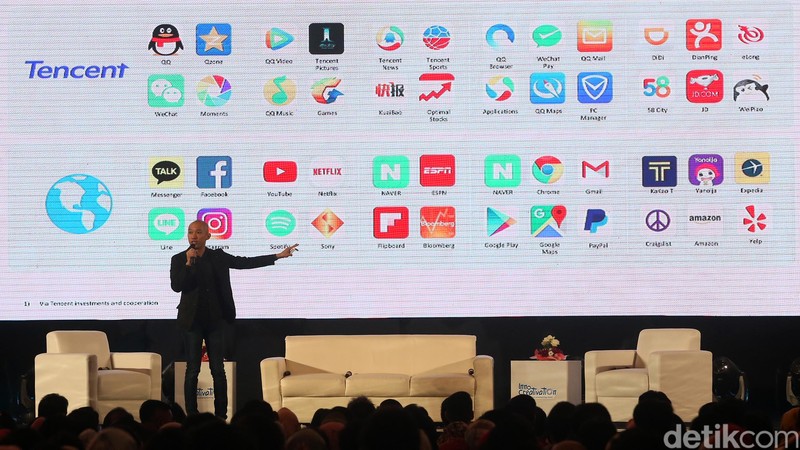 Senior Director of Business Development for Tencent International Business Group Benny Ho membagi pengalamanya membangun bisnis startup dalam acara InnoCreativation yang berlangsung Grand City, Surabaya, Rabu (14/11/2018).