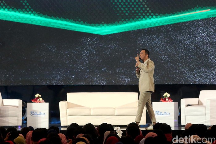 Giring Ganesha menjadi salah satu pembicara yang hadir dalam gelaran Innocrativation yang diselenggarakan di Grand City, Surabaya, Rabu (14/11/2018).
