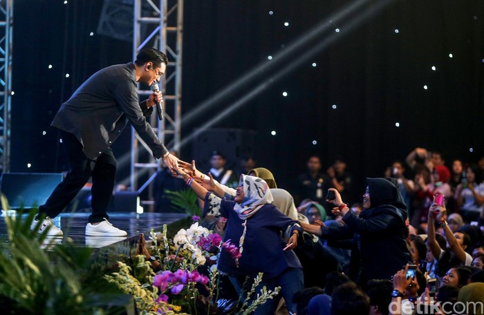 Sejumlah penonton yang hadir pun turut berebut untuk bersalaman dengan Afgan.